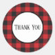 Pegatina Redonda Boda Rústico de Búfalo Negro Rojo Gracias