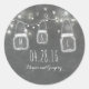 Pegatina Redonda Boda Rústico de Chalkboard Mason Jar Lights