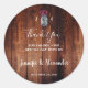 Pegatina Redonda Boda rústico de madera de grano monograma