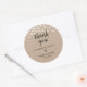 Moderno Boda rústico Gracias Regalos Clásicos Pegatina Redondo, en escritura limpia, pequeño corazón rojo lindo, con firma de novios y novios y fecha boda, kraft marrón de cabaña, tema de luces de cuerda.