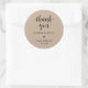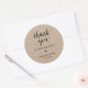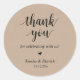 Moderno Boda rústico Gracias Regalos Clásicos Pegatina Redondo, en escritura limpia, pequeño corazón rojo lindo, con firma de novios y novios y fecha boda, tema de kraft marrón de cabaña.