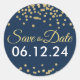 Pegatina Redonda Boda Salva La Fecha Purpurina De Oro Armada Confet