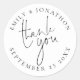 Pegatina Redonda Boda Script Gracias Nombres Fecha Blanco Negro