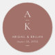 El sencillo y moderno Monograma Mezcla de color marrón Boda Pegatina redondo clásico presenta un diseño moderno y combina con colores tierra suaves y modernos.