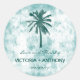 Estos pegatinas son perfectos para cualquier pareja que planee una celebración romántica de bodas en la playa. El diseño presenta una palmera verde verde azulada tropical sobre un fondo de color turquesa y blanco con texturas en color y una redacción editable en color. El diseño sencillo puede ser personalizado para su evento especial y será el perfecto para cualquier fiesta tropical con temática, incluyendo duchas de novias, compromisos, duchas de bodas, fiestas de cumpleaños y mucho, mucho más.