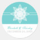 Pegatina Redonda Boda turquesa de invierno con copos de nieve Salve