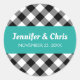 Pegatina Redonda Boda turquesa de plástico negro y blanco