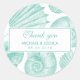 Pegatina Redonda Boda Verde azulado blanco de conchas marinas Graci