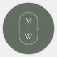 Pegatina Redonda Boda verde de Monograma minimalista Moss