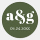 Pegatina Redonda Boda verde oscuro simple y elegante en monograma