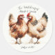 Pegatina Redonda Bodas de Acuarela Rústica de Gallinas Marrones