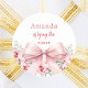 Pegatina Redonda Bodas de lazo rosa flores Despedida de soltera