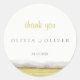 Boda Pegatina redonda con paisaje de la naturaleza montañosa. Suavidad Naturaleza paisaje primavera praderas verdes en flor. Silhouettes de montañas rocosas marrones, campo de césped y flores de león blancas. Boda de fondo de pintura acuarela Pegatina redondo. Las fotos en la colección Bloom.