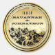 Pegatina Redonda Bodas musicales negras y doradas de damasco