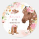 Horse Birday Party Cowgirl Pink Floral Birthday Classic Round Sticker Todos los diseños son © PIXEL PERFECTION FIESTA LTD