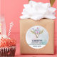 Pegatinas de velas y jabones con un fondo de color turquesa y color pastel. Un cráneo boho de animales de moda con un ramo de flores en la cabeza y pequeñas mariposas revoloteando por ahí. Un bonito borde decorativo con pequeñas formas de lágrimas en azul claro.