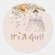 Pegatina Redonda Boho Bebé Chica Colgando Traje Vestido