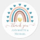 Pegatina Redonda Boho Blue Rainbow Personalizado Gracias Baby Showe