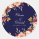 Pegatina Redonda Boho Boda floral Naranja de la marina moderna quem