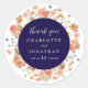 Muestra tu gratitud con estilo con esta flor silvestre azul marino y blanco Boho Floral elegante otoño Wedding Gracias Pegatina, diseñado para agregar un toque personal y sincero a tu celebración de otoño. Este pegatina, que cuenta con un bonito marco de flores silvestres pintadas a mano, retrata el encanto acogedor de un frondoso prado ajardinado en cálidos tonos otoñales como naranja quemado, terracota, marrón, morado, amarillo, coral y rosa suave. Personalizado con los nombres de la pareja y la fecha boda en tipografía blanca moderna sobre un rico fondo azul marino, es el toque final perfecto para tarjetas de agradecimiento, bolsos de favores o keepsakes. El diseño floral caprichoso, creado a partir de una obra de arte original de la artista Catherine Sweetman, aporta una elegancia inspirada en la naturaleza a su mensaje más sincero.