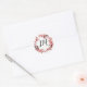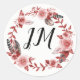 Pegatina Redonda Boho Feather Burgundy Rosa Wreath Monograma Boda
