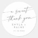 Esta moda de boho gris plateado, un dulce agradecimiento a favor del pegatina redondo clásico, es perfecto para un boda minimalista. El original diseño bohemio moderno, gris plateado y blanco, presenta una caligrafía rústica sencilla con un estilo único y clásico. Personalice a sus pegatinas favoritos con sus nombres y fecha de boda.