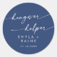 Este ayudante de la resaca azul real de la moda boho favorece al pegatina redondo clásico es perfecto para un boda minimalista. El audaz diseño bohemio moderno azul oscuro presenta una caligrafía rústica sencilla con un estilo único y clásico. Personalice a sus pegatinas favoritos con sus nombres y fecha de boda.