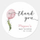 La moderna decoración con globos de boho y el tema de la ducha para bebés favorece al pegatina con ilustracion acuarela de globo rosa con hojas botánicas verdes. El texto dice "gracias".