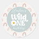 Pegatina Redonda Boho Rainbow Daisy Wild One Chica primer cumpleaño