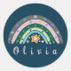Pegatina Redonda Boho Rainbow Trendy con nombre personalizado