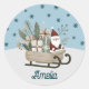 Pegatina Redonda Boho Santa en Sleigh Con Regalos Nombramiento De C