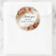 Boho terracotta pampas ducha de novia gracias pegatina redondo clásico Este moderno diseño popular es perfecto para eventos de estilo boho o tropical. Se presenta diseño acuarela pampas pintadas a mano hierba juntando hojas de palma secas mezcladas con flores de terracota y rosas naranjas quemados mezclando flores de cobre rosas del desierto y flores borgoñas mixtas rosas de flores de tierra oxidadas mezcladas y vegetación tocada de eucalipto y fuente combinada moderna de caligrafía. Si planeas una celebración de Fiestas tropicales o de playa, este diseño es para ti. Sensación de boho y visión notable. Las flores naranjas quemadas mezclan rosas burdeos con flores de terracota y el arreglo de eucalipto verde y el estilo combinado de letra de escritura a la moda hacen que estos elementos de diseño sean tan impresionantes. Utilizado con éxito para Boda, ducha de novia, compromiso, Baby Shower, aniversario o cualquier evento. En esta colección podrá encontrar todos los elementos para su fiesta, como invitaciones a bodas, invitaciones a duchas nupciales, invitaciones a duchas de bebé, cartas de asientos, menús, programas, etiquetas, carteles, posters y mucho más. ¡Disfrútalo! Contáctame para obtener elementos coincidentes o para personalización, Rosas de Rubor ©