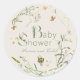 Boho Wildflower Bee Beige Baby Shower Pegatina redondo clásico