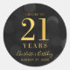 Pegatina Redonda Bokeh de oro a 21 años cumpleaños