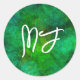 Pegatina Redonda Bokeh negro y verde monogramado