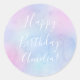 Pegatina Redonda Bonito acuarela Feliz cumpleaños nombre morado