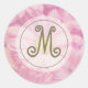 Alegre Bonito Personalizado Rosa Daisy  Oro Pegatinas de Cartas Iniciales. Florecen las hembras iniciales de color rosa floral. Magnífico y adorable con una niñita, flores rosadas chicas acentuadas con amarillo y blanco. Bonito monograma inicial se sienta sobre un marco blanco translúcido dorado. Bonito Daisies Rosa Personalizado Oro Primer Pegatina Redondo Clásico