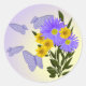 Pegatina Redonda Bonito Flor silvestre y Violet Gingham Mariposa