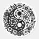 Pegatina Redonda Bonito Floral blanca y negra Yin Yang