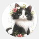 Pegatina Redonda Bonito gatito de Tuxedo con flores