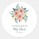 Bonito Mint Sage Rubor Personalizado Floral Rosa Baby Shower Classic Pegatina redondo