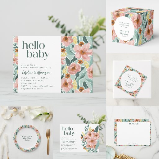 Pastel Sage Floral Baby Shower DecorationsDiseñado por Opal Ellery