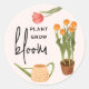 Pegatina Redonda Bonito Script Planta Crecer Bloom Tulip