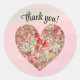 Pegatina Redonda Bonito Vintage Rosa Heart Gracias