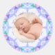 Bonitos suaves pasteles Navidades Personalizados Foto Pegatinas redondos clásicos. Pasteles alegres y festivos Navidades de Personalizado morado, verde y rosa foto marco de imagen de decoración de cuadernillo de regalo. Un pegatina suave y colorido para sus decoraciones, artesanías y tarjetas de decoración casera con temática violeta y verde. El diseño del cuadro es un patrón de abstracción geométrica alegre que toma los diseños tradicionales de bloques de colores festivos. En tonos pastel de lila de lavanda con verde árbol de invierno, y rosa bonito para un País de las Maravillas de Invierno. Personalízalo reemplazando la foto con la tuya por una manera divertida de decorar tus sobres para Navidades. La foto del stock muestra a un bebé durmiendo. Aprecie sus recuerdos Yuletide. Un gran regalo para los mejores amigos y hermanos y hermanas, abuelos o parejas. Un mantenimiento económico, para la reserva de recortes o la elaboración de artículos.