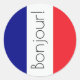 Pegatina Redonda Bonjour bandera francesa azul rojo