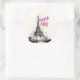 Bonjour Colorful Paris. Pegatina Redonda Clásica. Compra los mejores regalos en el Día de la Torre Eiffel 31 de marzo para tus amigos, chicas, chicos, hermanos, hermanas, padres y abuelos. #eiffeltowerday #camisetas