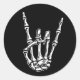 Dibujo con lápiz y tinta de una mano esquelética en el pesado gesto de saludo rocoso metalizado. Gráfica B/W, en camisetas, carteras, botones, pegatinas, tarjetas, regalos.