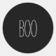 Pegatina Redonda Boo blanco negro espeluznante Halloween escrito a