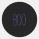 Pegatina Redonda Boo morado negro espeluznante Halloween escrito a